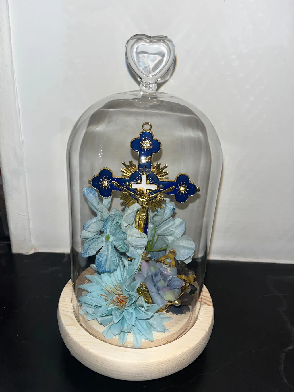 Size: 20cm/ 12cm; Materials: Glass, Wood; Colour: Blue